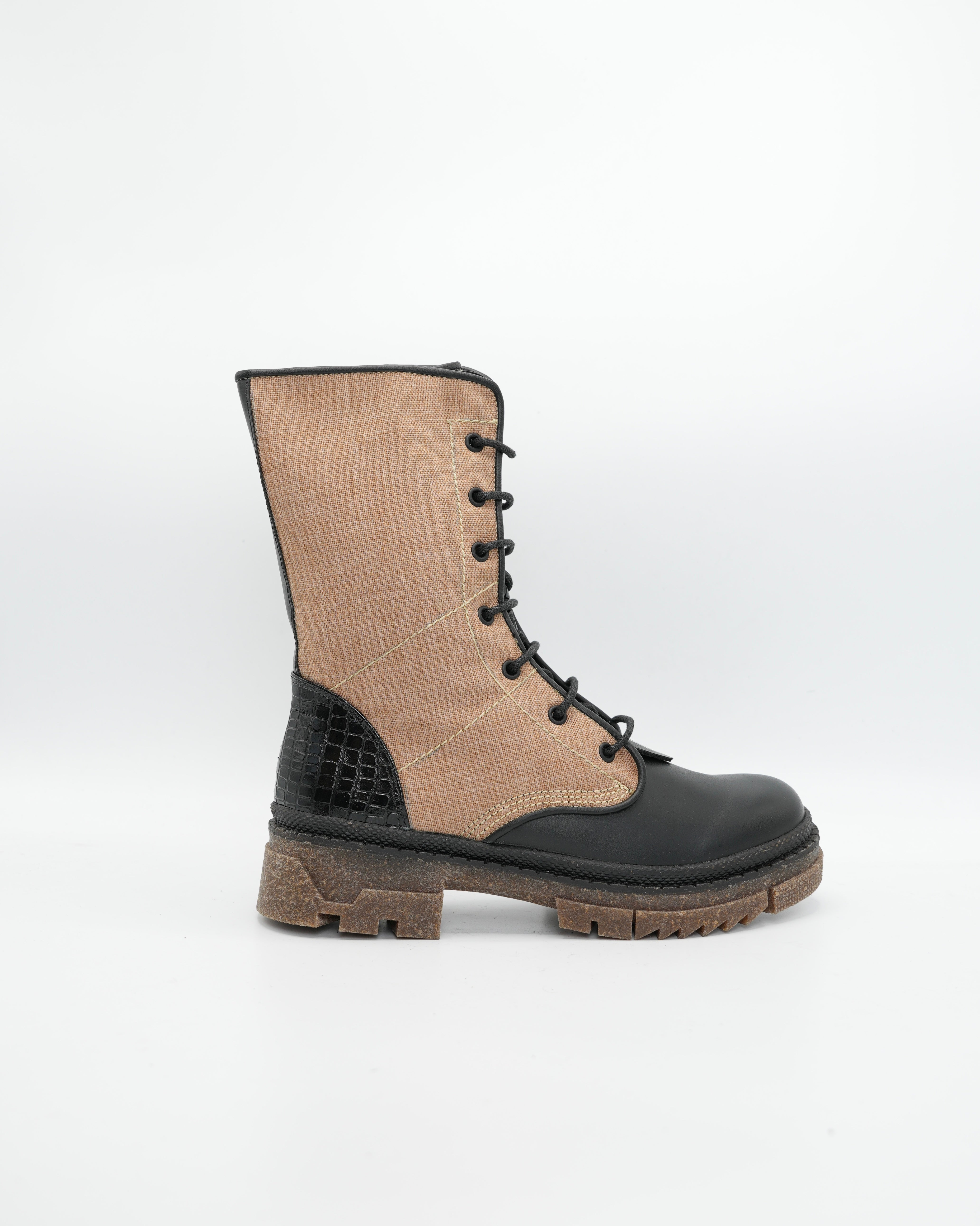 Bota en cuero negro y beige