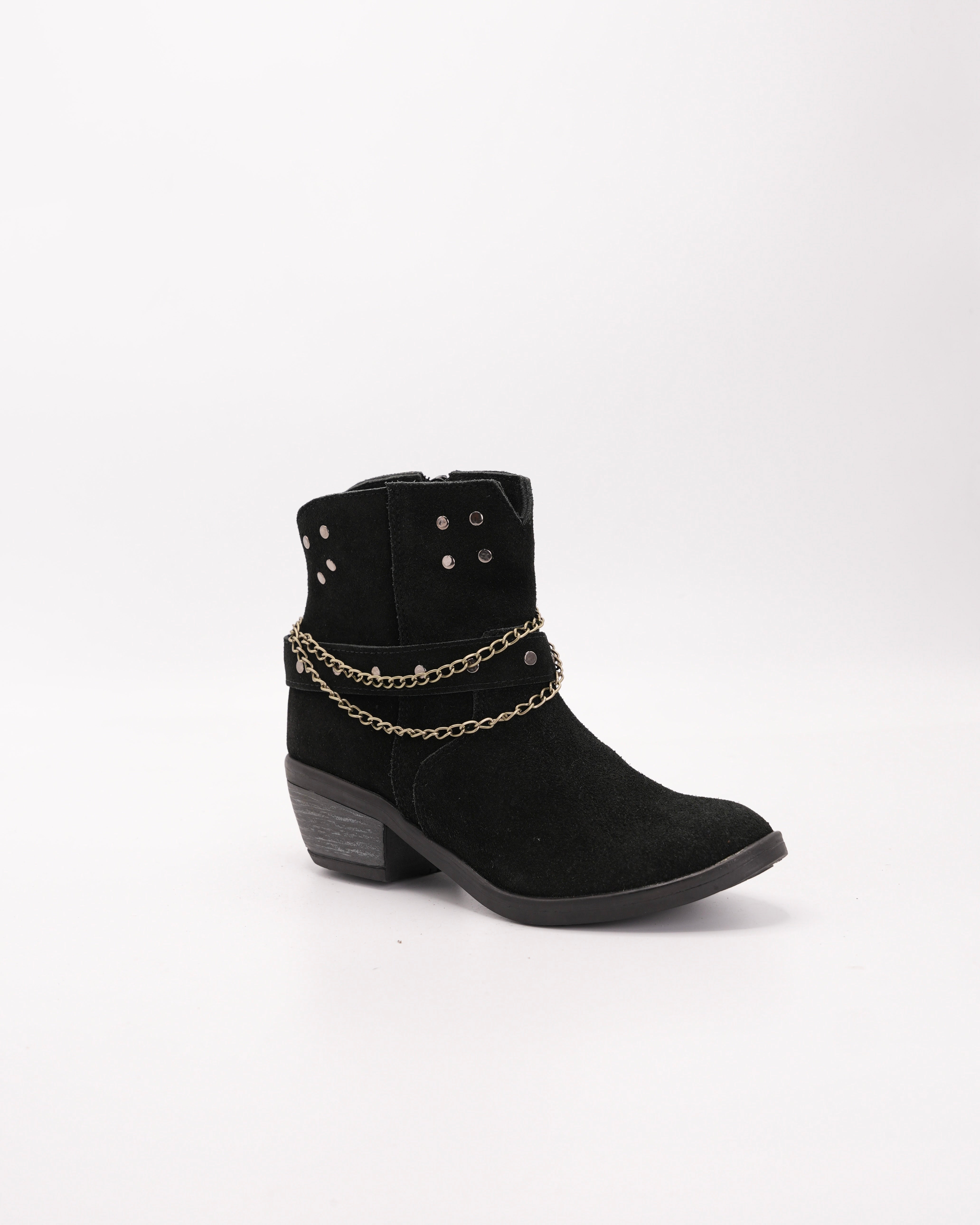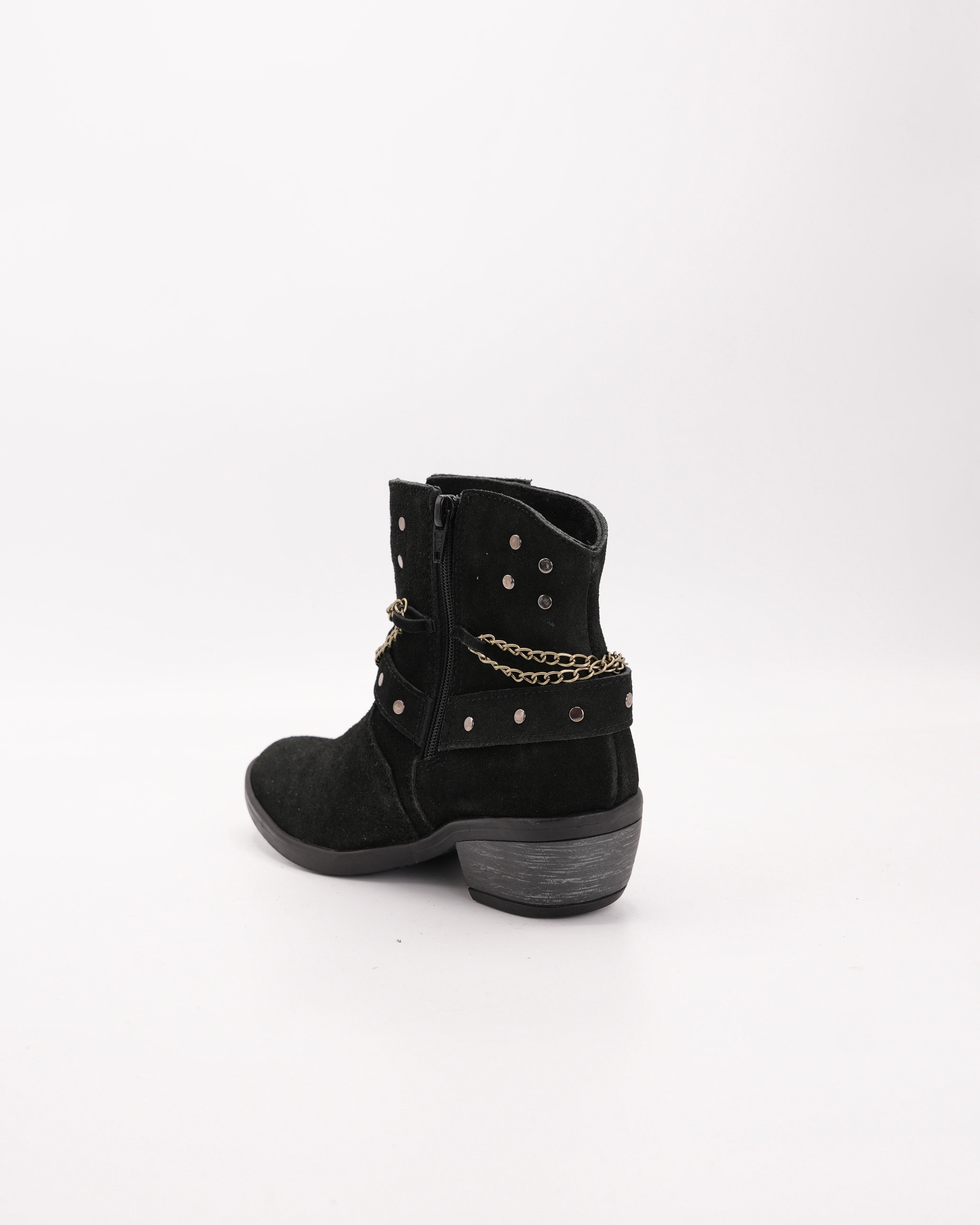 Botín en cuero gamuza negro con cadenas