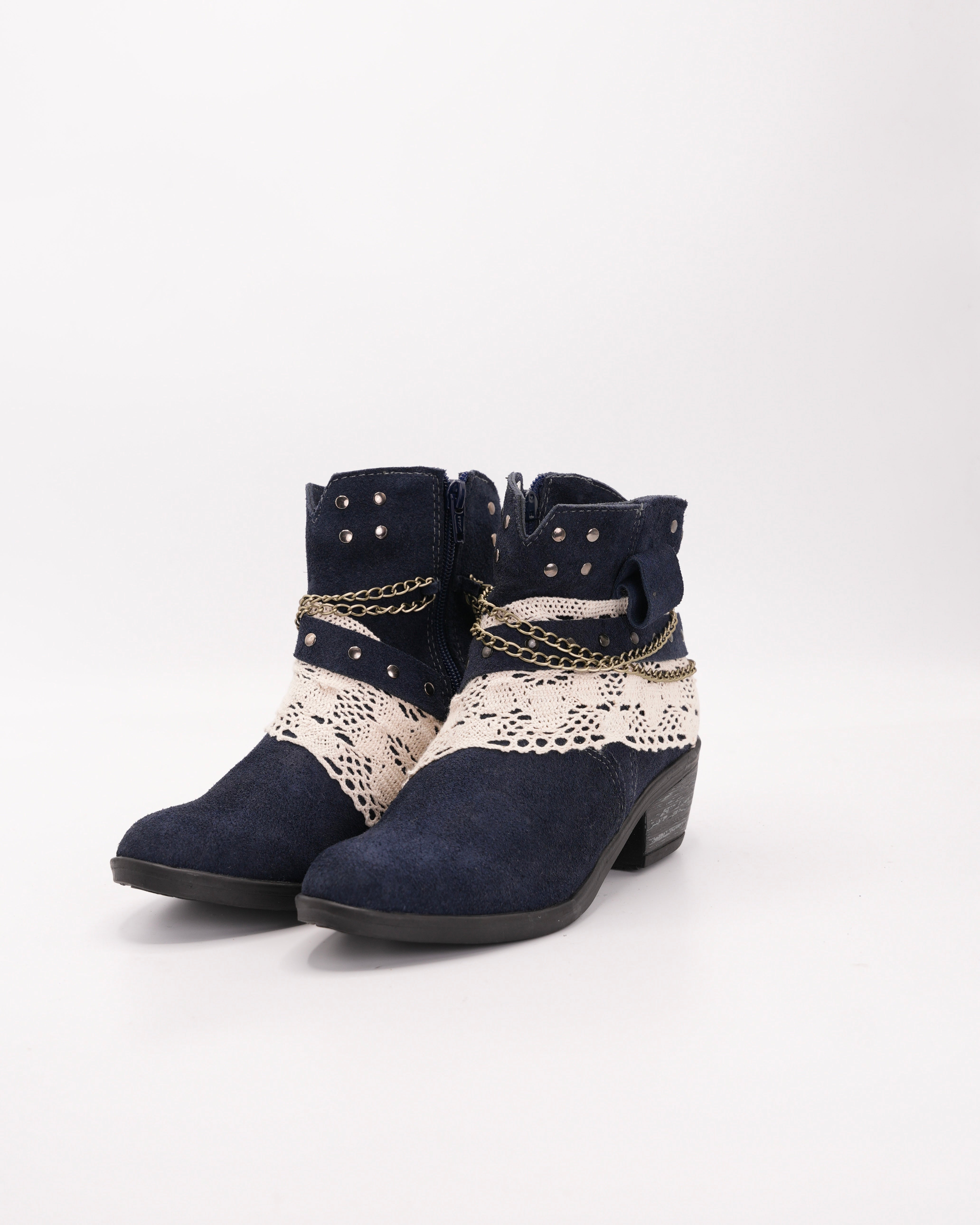 Botin en cuero azul con encaje